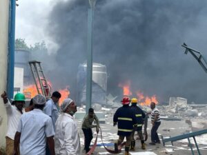 An eyewitness described the blast as deafening and said the fire rapidly consumed the structure. “It felt like a bomb explosion,” he said, recalling how several workers were thrown from the upper floors due to the impact. The thick smoke and chemical fumes hampered rescue operations and caused panic among workers’ families who rushed to the site in distress.